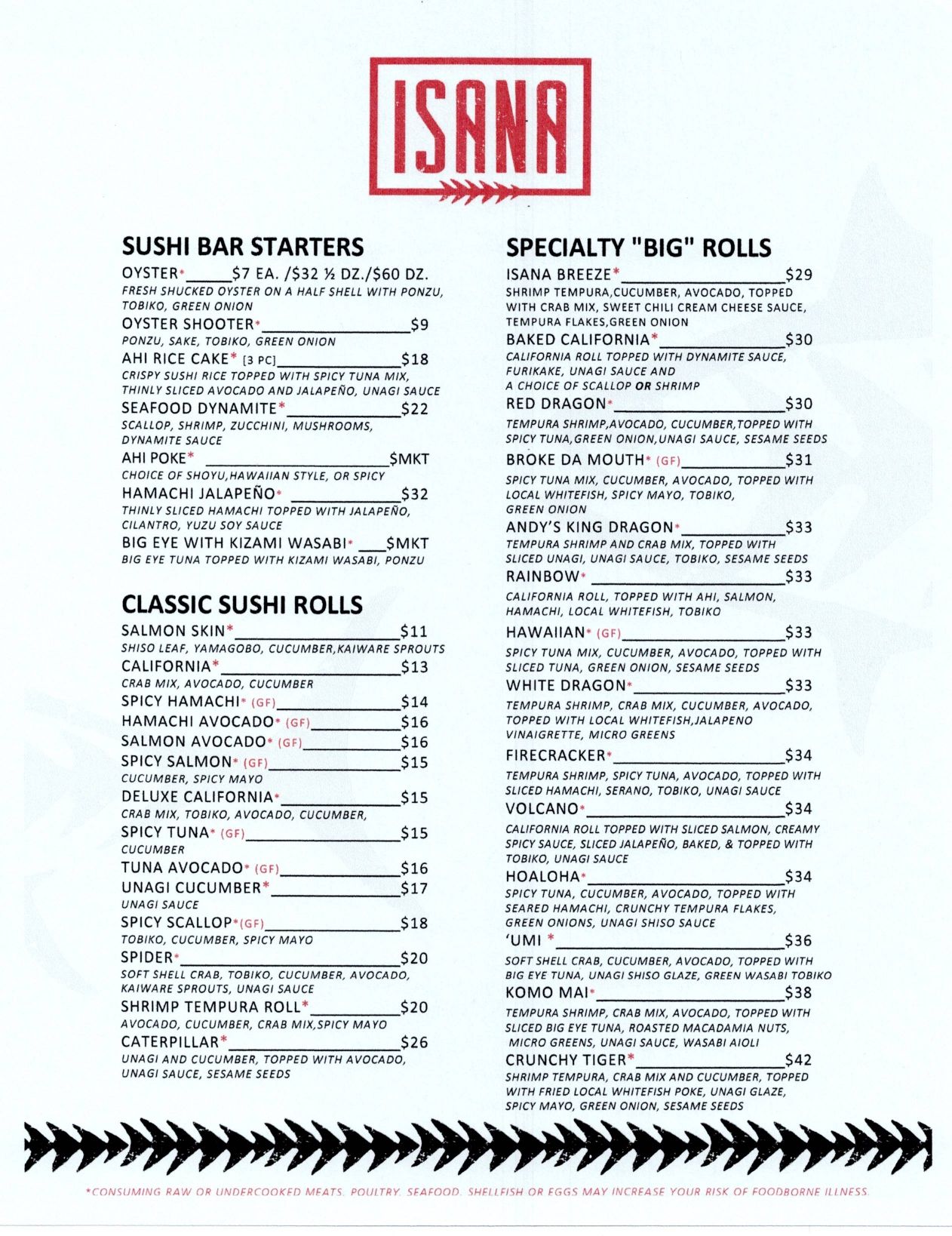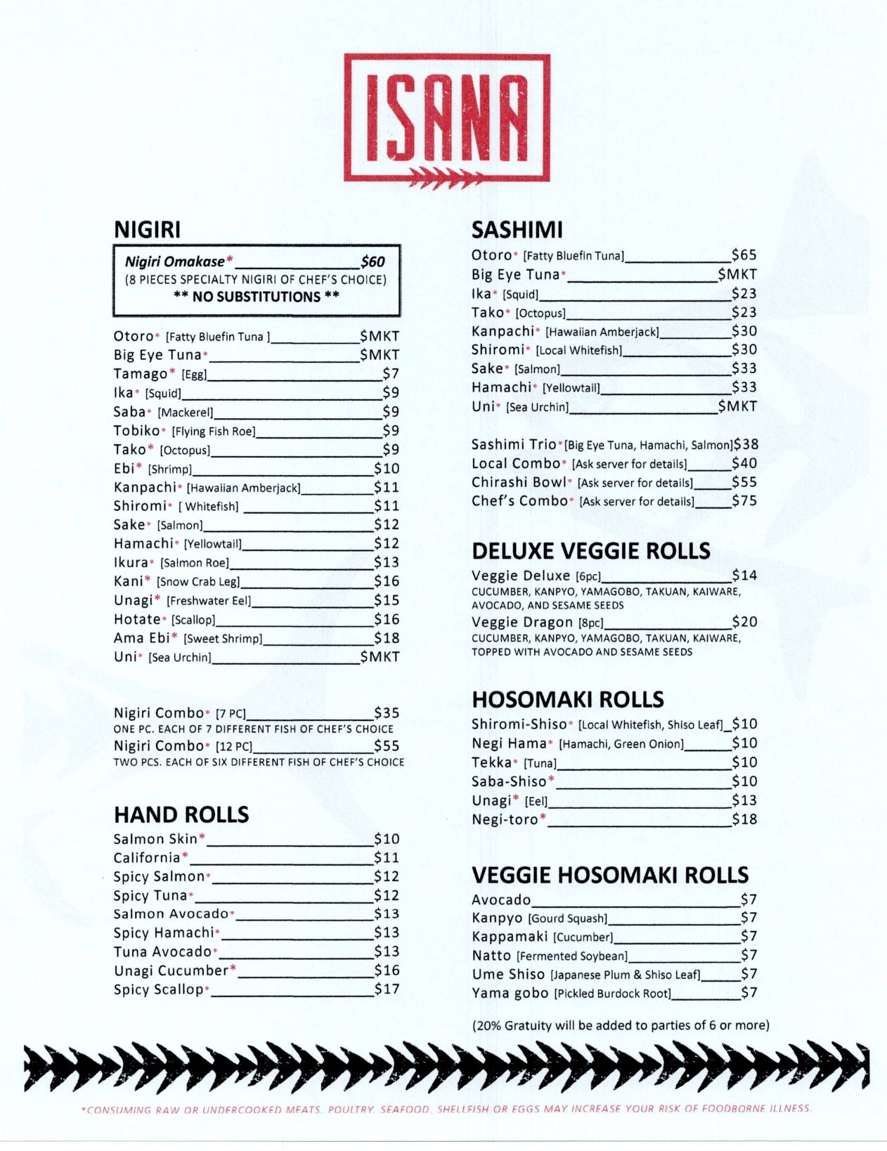 Sushi Menu